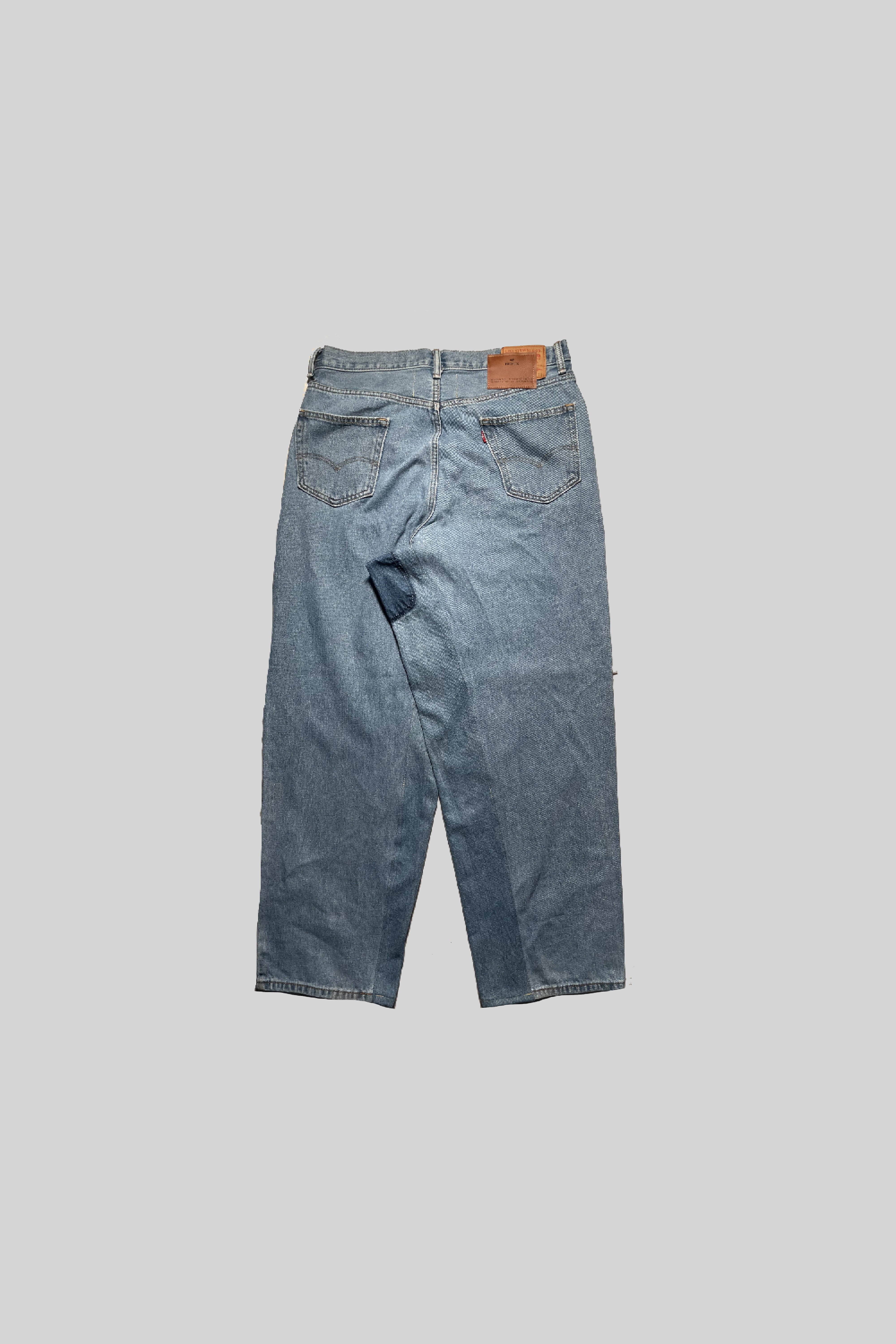 "REMIX" engraved leather patch on the back belt loop.