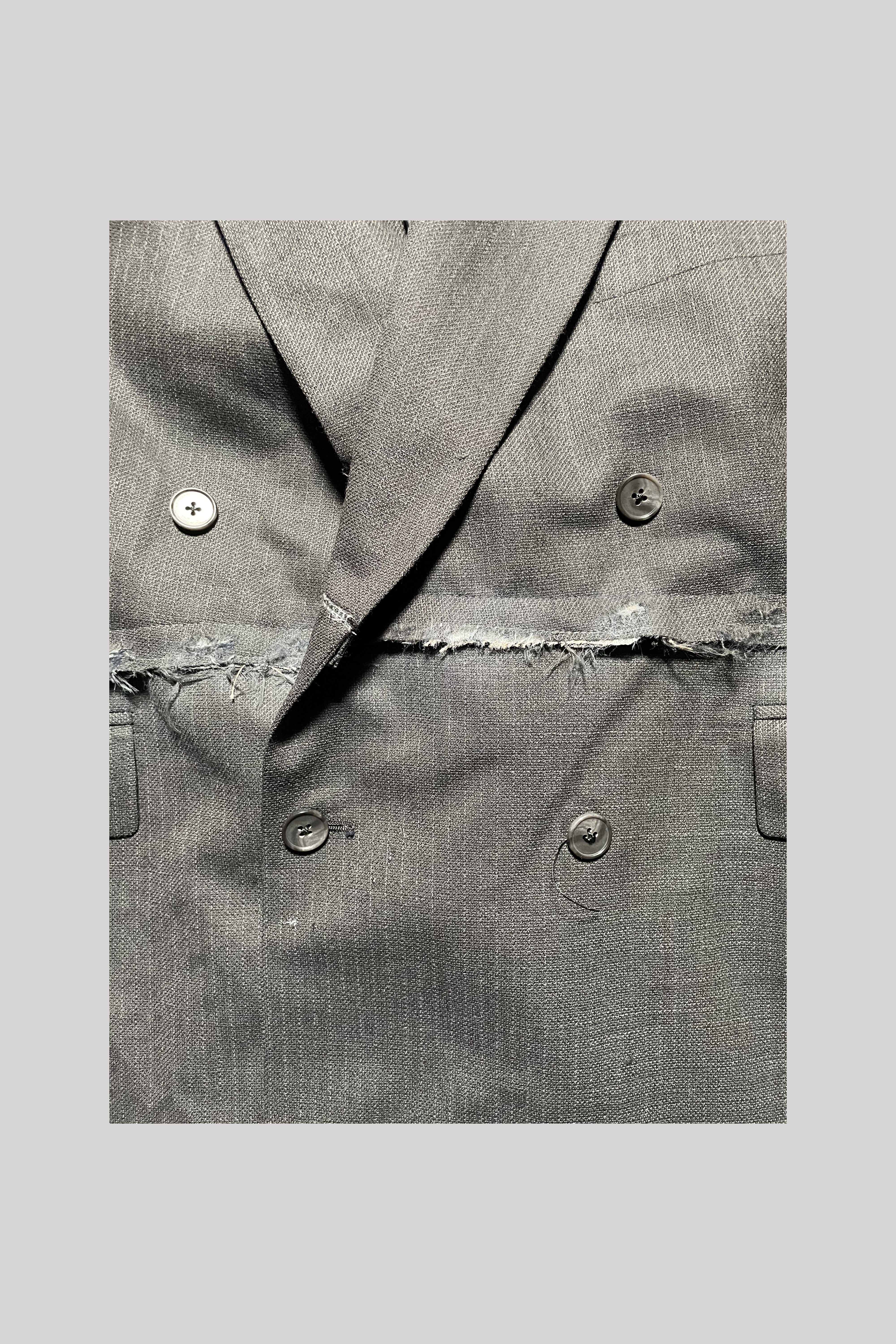This tailored jacket has been reconstructed and remodeled to